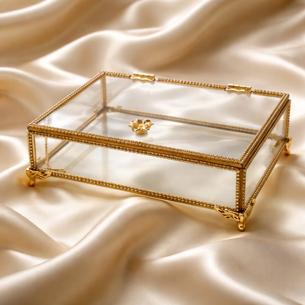 KDD PLEXİ TAŞLI ALTIN CAM KUTU AYAKLI 25*16 CM - 236