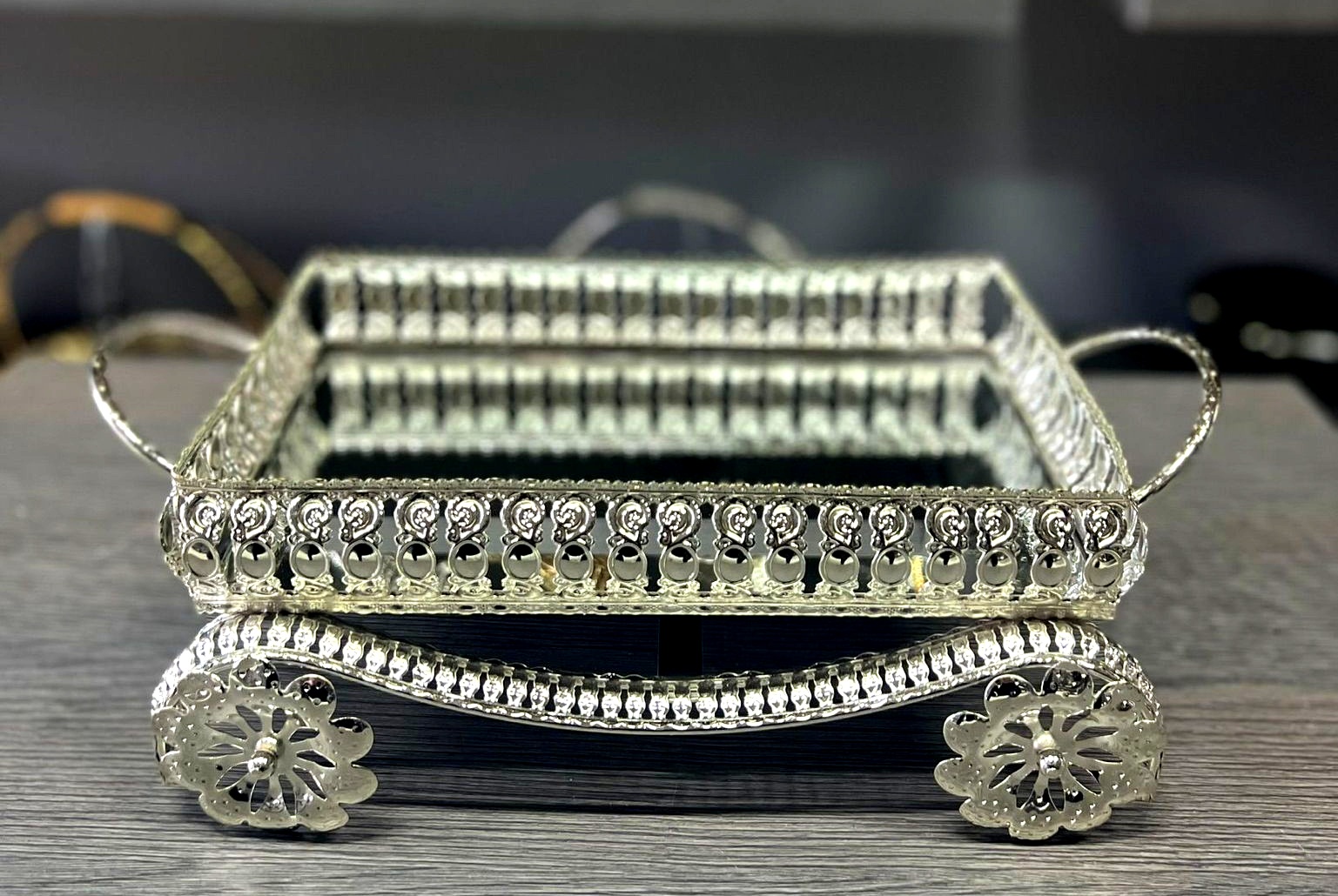 HK DİKDÖRTGEN TEPSİ GÜMÜŞ KÜÇÜK 25 CM Büyük 30 CM (İKİLİ TAKIM)