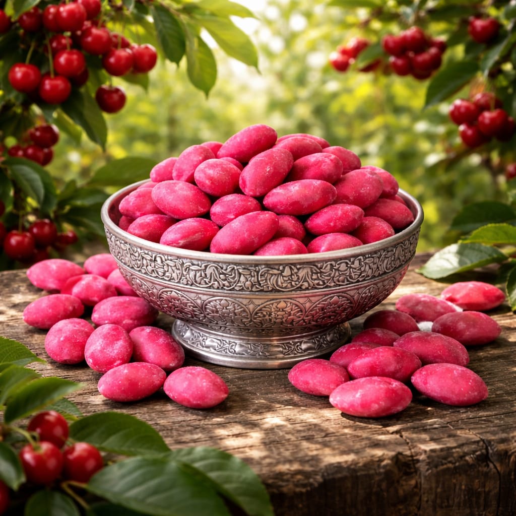 PREMIUM MARDİN YÖRESEL VİŞNELİ BADEM ŞEKERİ (KG FİYATI 441 TL'DİR. KOLİ İÇİ 3 KG'DIR)