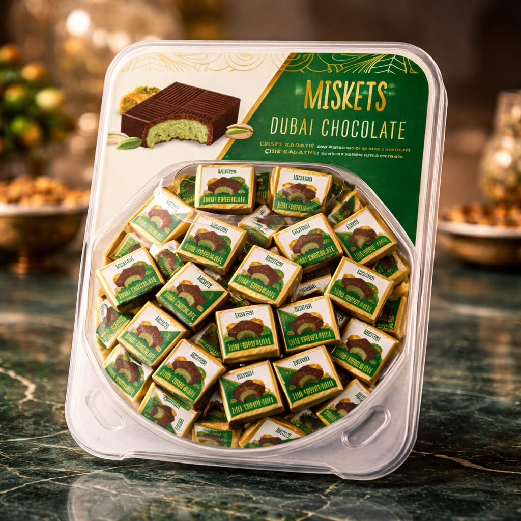 PAKEL MİSKETS DUBAİ ÇİKOLATASI 13 GR KÜRE İÇİ 80 ADET (ADET FİYATI 15.77 TL'DİR. KÜRE FİYATIDIR)