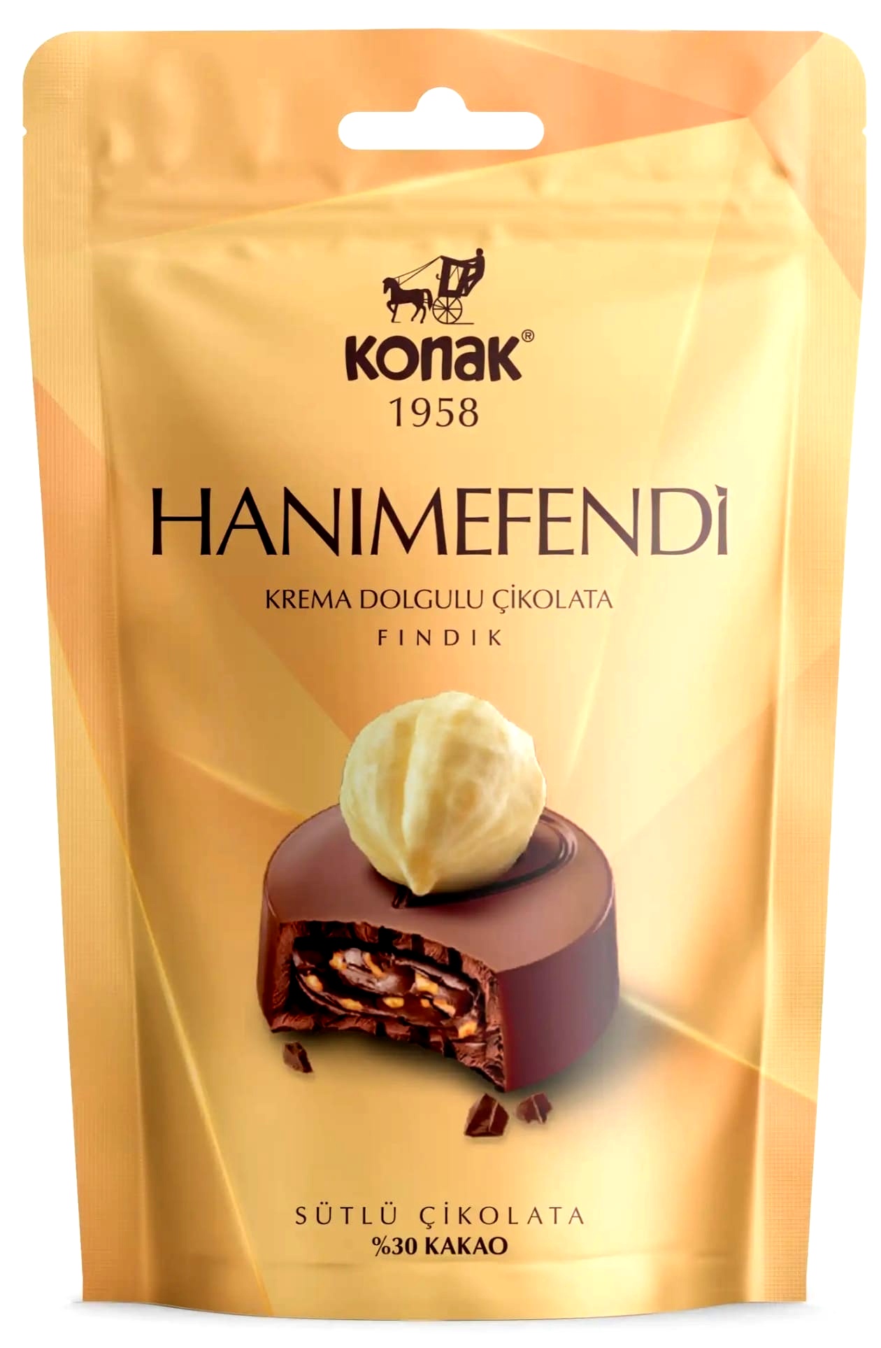 KONAK 4243 -- HANIMEFENDİ FINDIK PARÇACIKLI ÇİKOLATA DOYPACK 85 GR (ADET FİYATIDIR. KOLİ İÇİ 12 ADETTİR) 320004