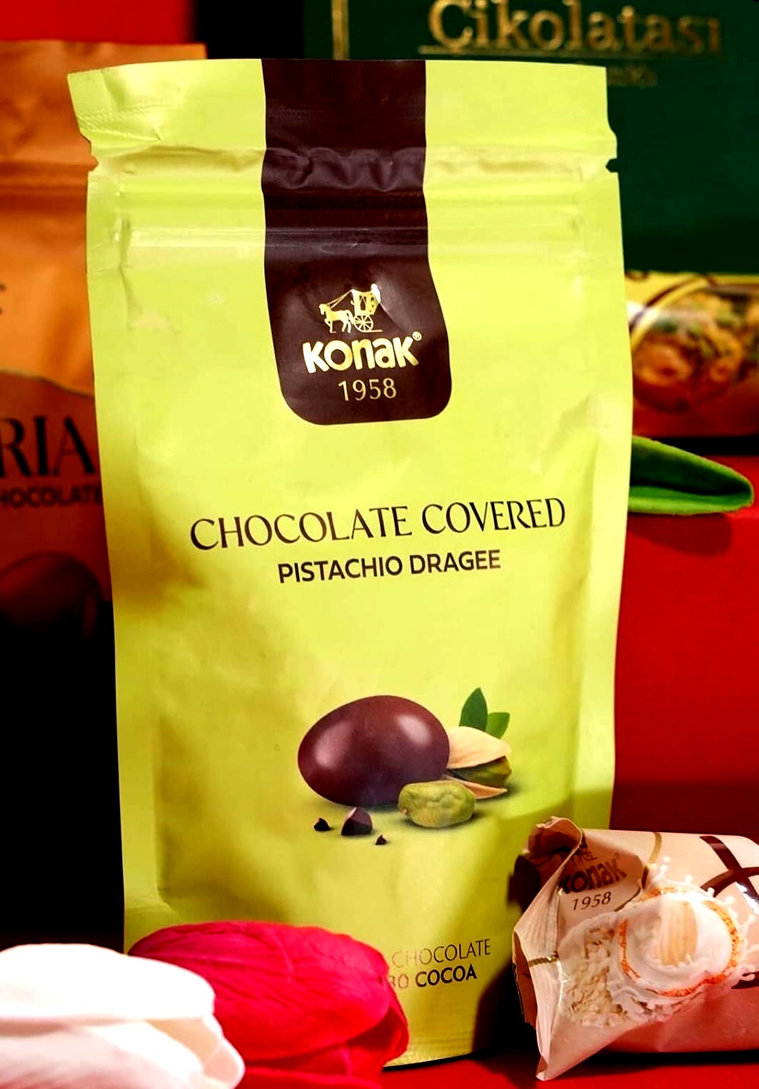 KONAK 4366 -- ANTEP FISTIKLI DRAJE ÇİKOLATA DOYPACK 85 GR (ADET FİYATIDIR. KOLİ İÇİ 12 ADETTİR) 320023