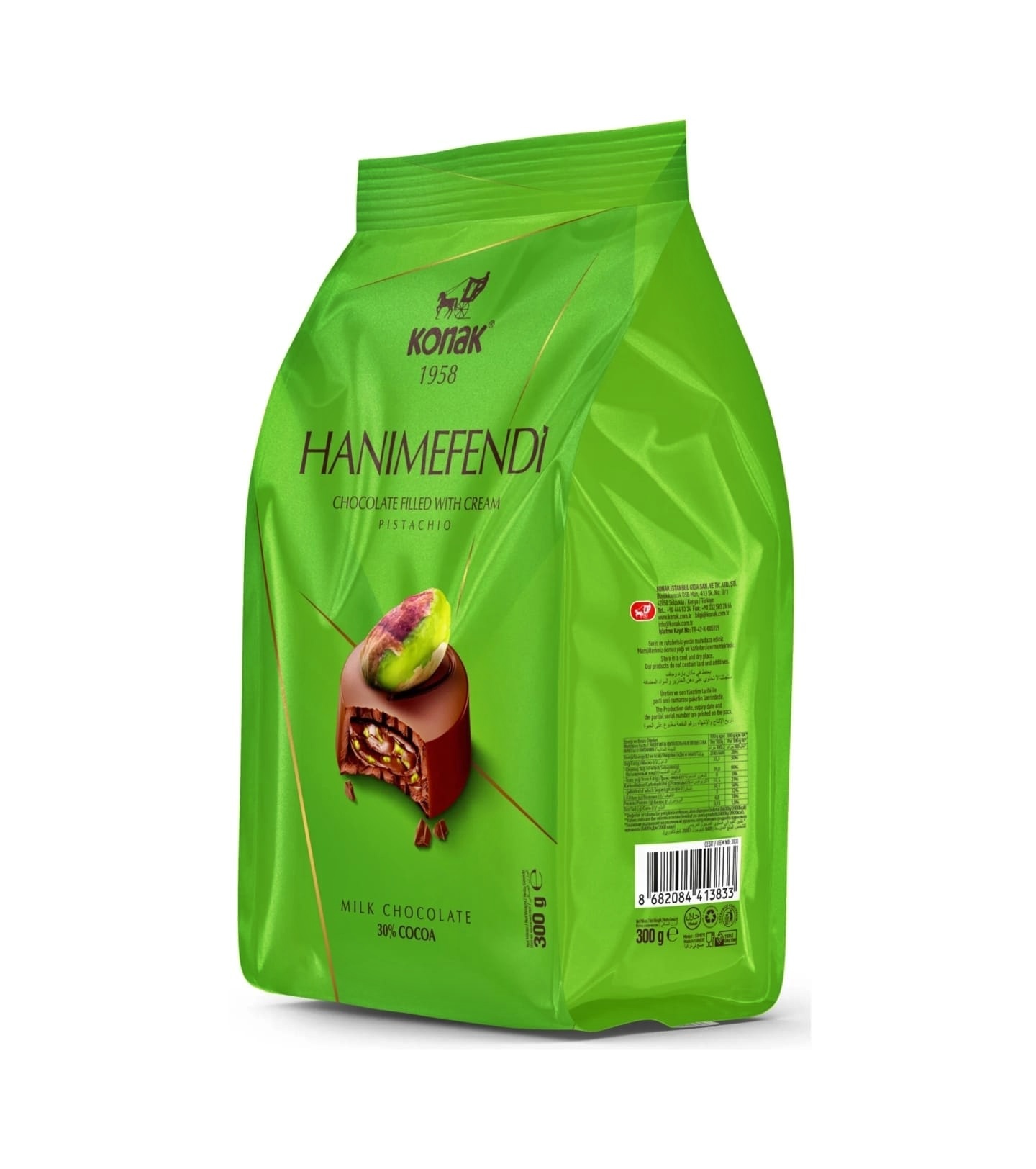 KONAK 320008 -- HANIMEFENDİ SÜTLÜ ANTEP FISTIKLI ÇİKOLATA 300 GR (ADET FİYATIDIR. KOLİ İÇİ 12 ADETTİR)