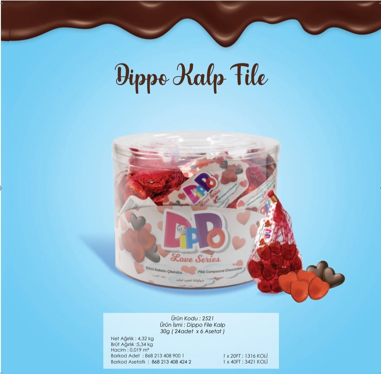 DİPPO FİLE KALP ASETAT 30 GR (ADET FİYATI 12.50 KRŞ'TUR. DİSPLAY İÇİ 24 ADETTİR)