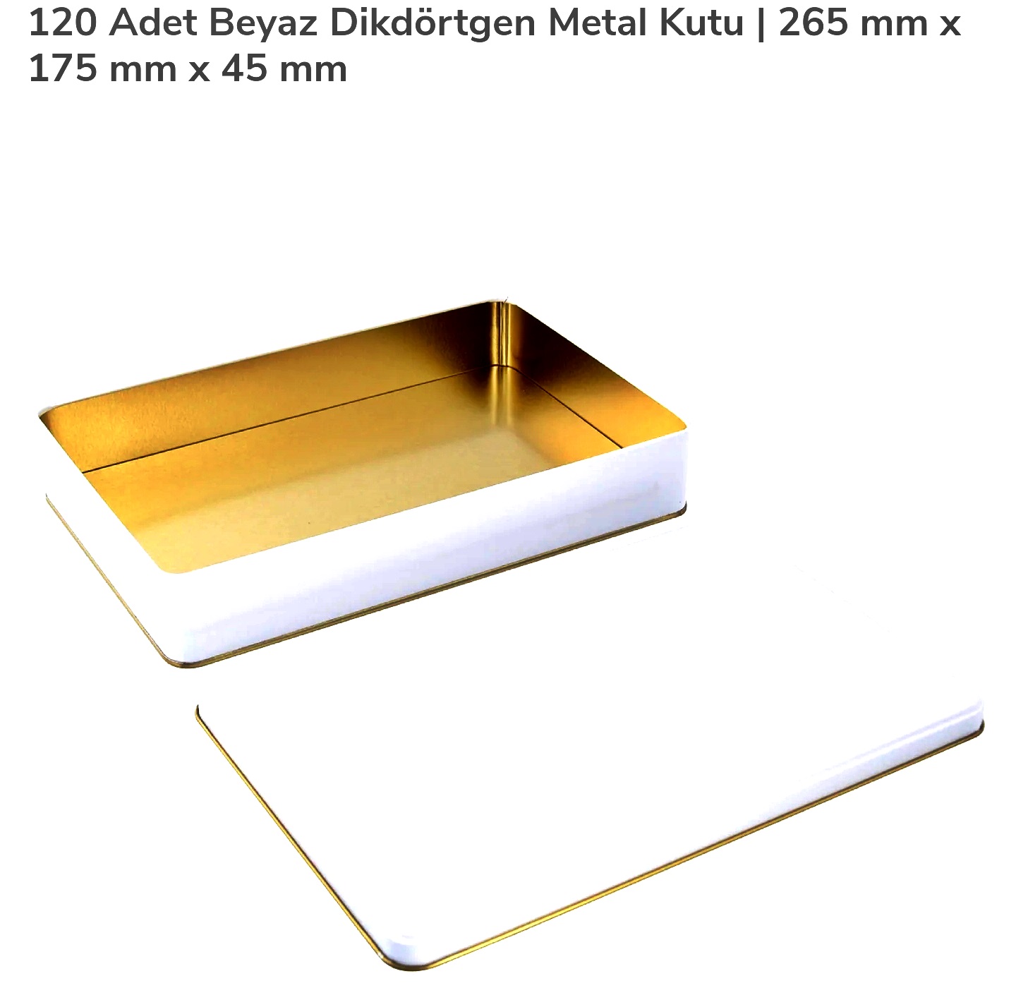 MŞ BEYAZ KARE İÇİ GOLD METAL KUTU 265*175*45 MM