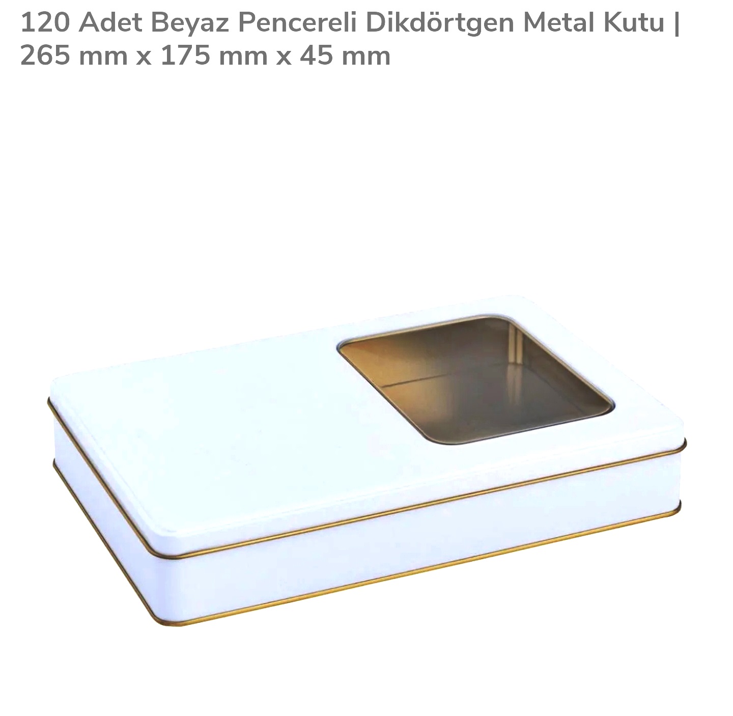 MŞ BEYAZ PENCERELİ GEÇME KAPAKLI İÇİ GOLD DIŞI BEYAZ METAL KUTU 265*175*45 MM