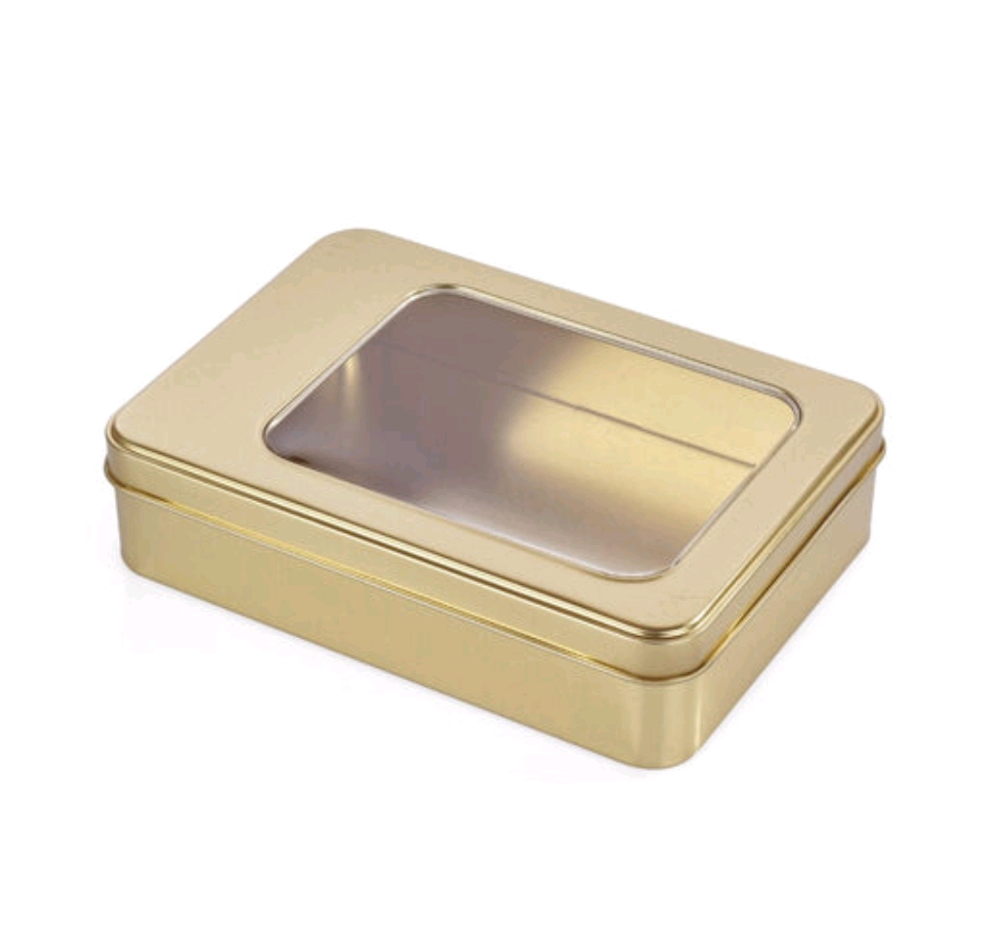 MŞ GOLD PENCERELİ GEÇME KAPAKLI İÇİ GOLD DIŞI GOLD METAL KUTU 190*135*45 MM
