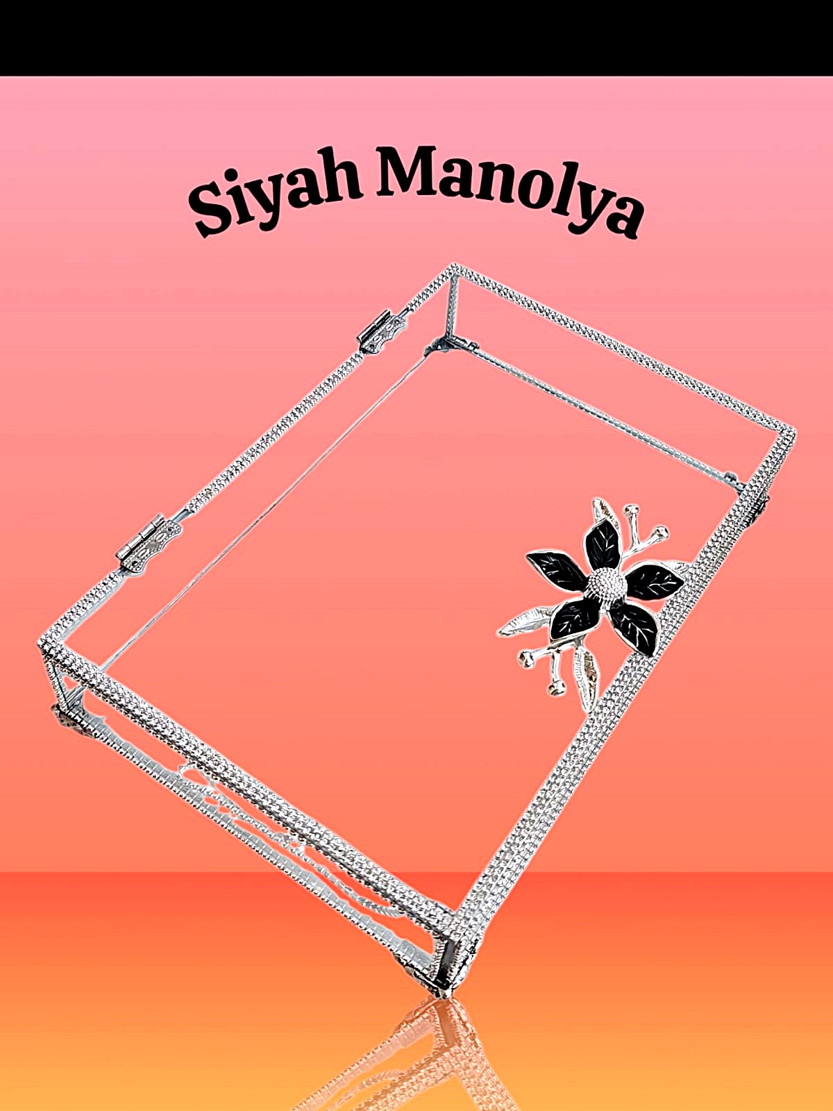 KDD SİYAH MANOLYA AYAKLI TAŞLI GÜMÜŞ GONDOL (25*16) - 4543