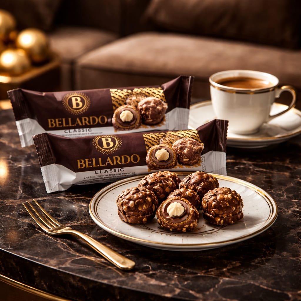 BELLARDO 3'LÜ PAKET İÇİ BÜTÜN FINDIKLI DIŞI FINDIK PARÇACIKLI ÇİKOLATA DOLGULU TRÜF (ADET FİYATI 48 TL'DİR. KUTU İÇİ 16 ADETTİR) -- 19870
