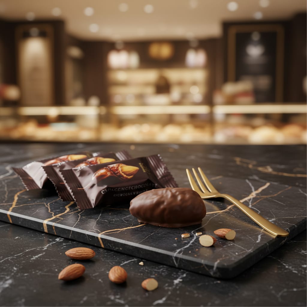HURİES HURMA İÇİ BADEMLİ DIŞI SÜTLÜ ÇİKOLATA KAPLI (KG FİYATI 780 TL'DİR. KOLİ İÇİ 10 KG'DİR)