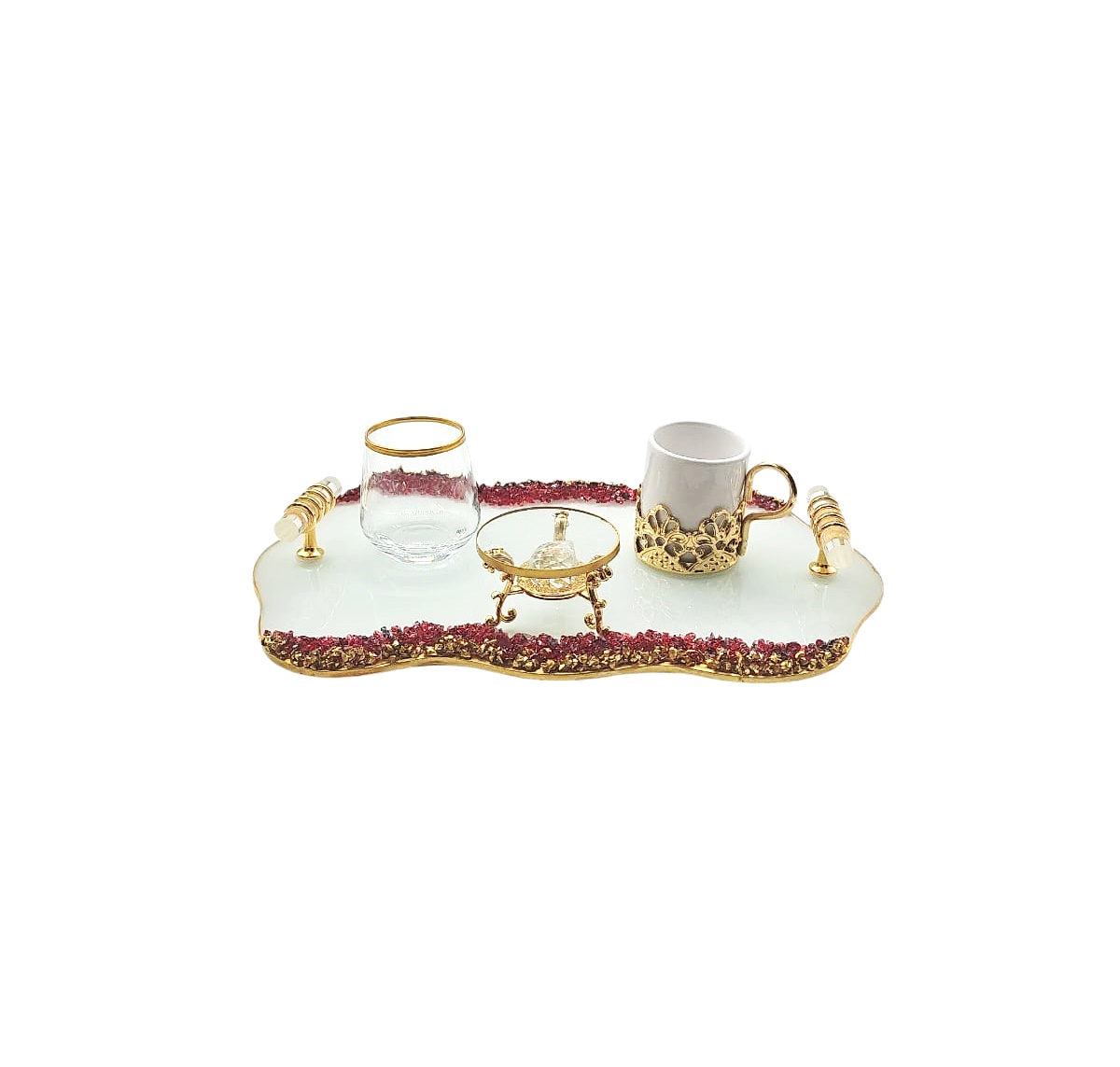 KDD BEYAZ CAM -KIRMIZI / ALTIN TAŞLI DAMAT KAHVE SETİ KÜÇÜK BOY DALGALI DİKDÖRTGEN- 6