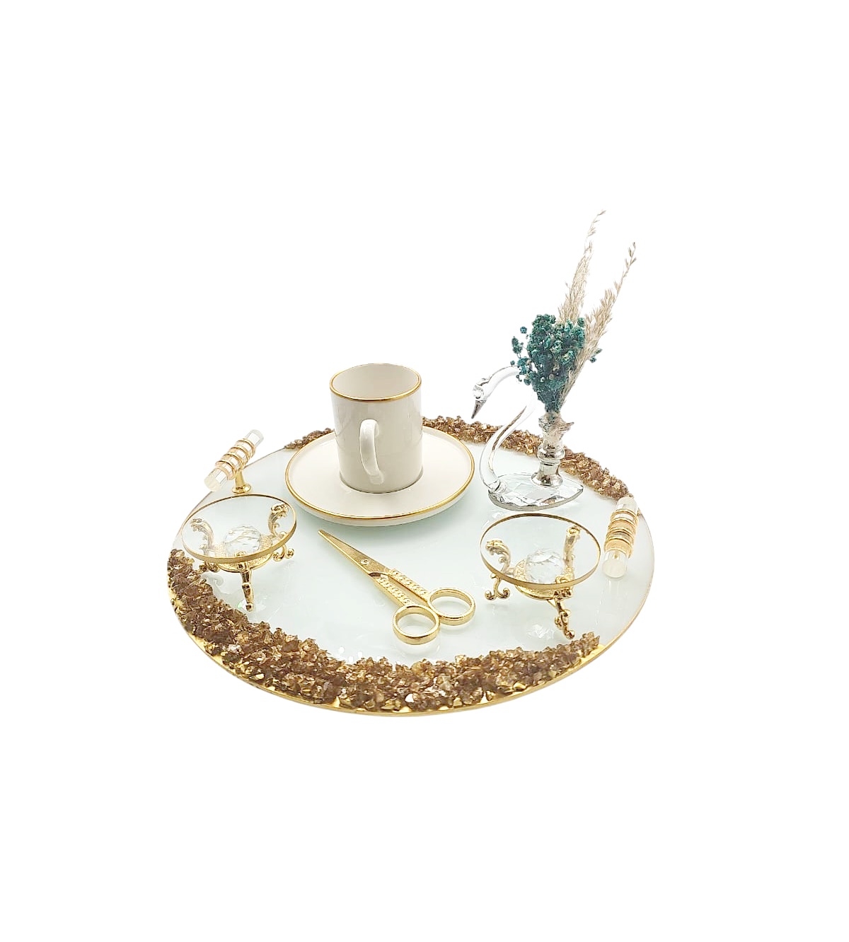 KDD BEYAZ CAM -ALTIN TAŞLI NİŞAN FULL SETİ BÜYÜK BOY YUVARLAK (KUĞU-FİNCAN-MAKAS-YÜZÜKLÜK) - 7