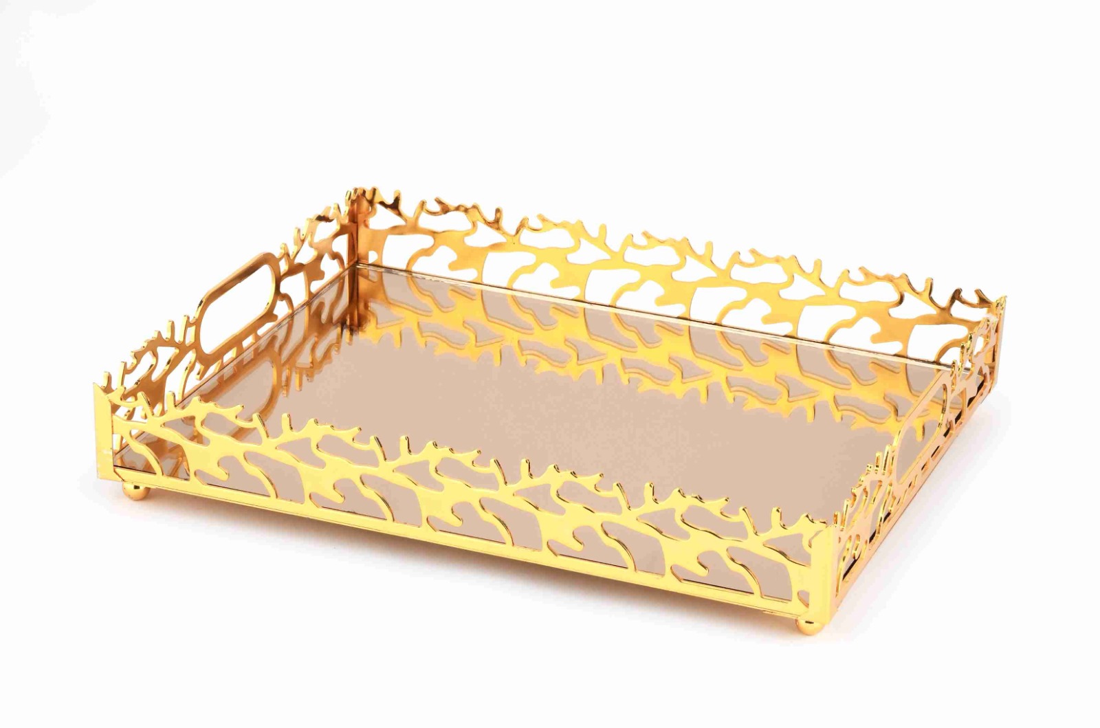 HLK-0662 ALTIN 35*30 CM AYNALI DİKDÖRTGEN TEPSİ