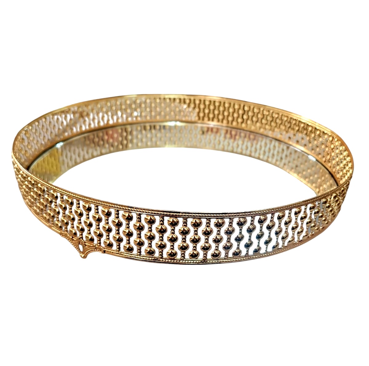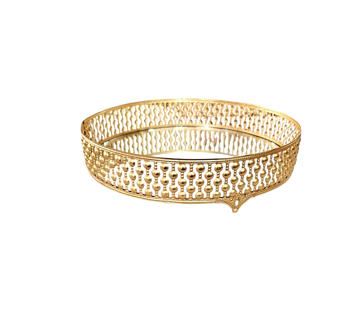 BKZ 4022-A LEYLAK PIRLANTA TAŞLI YUVARLAK AYNALI TEPSİ 36,5x27x5 cm ALTIN