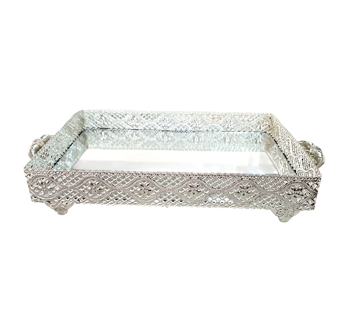HLK-0448 GÜMÜŞ 35*30 CM AYNALI DİKDÖRTGEN TEPSİ