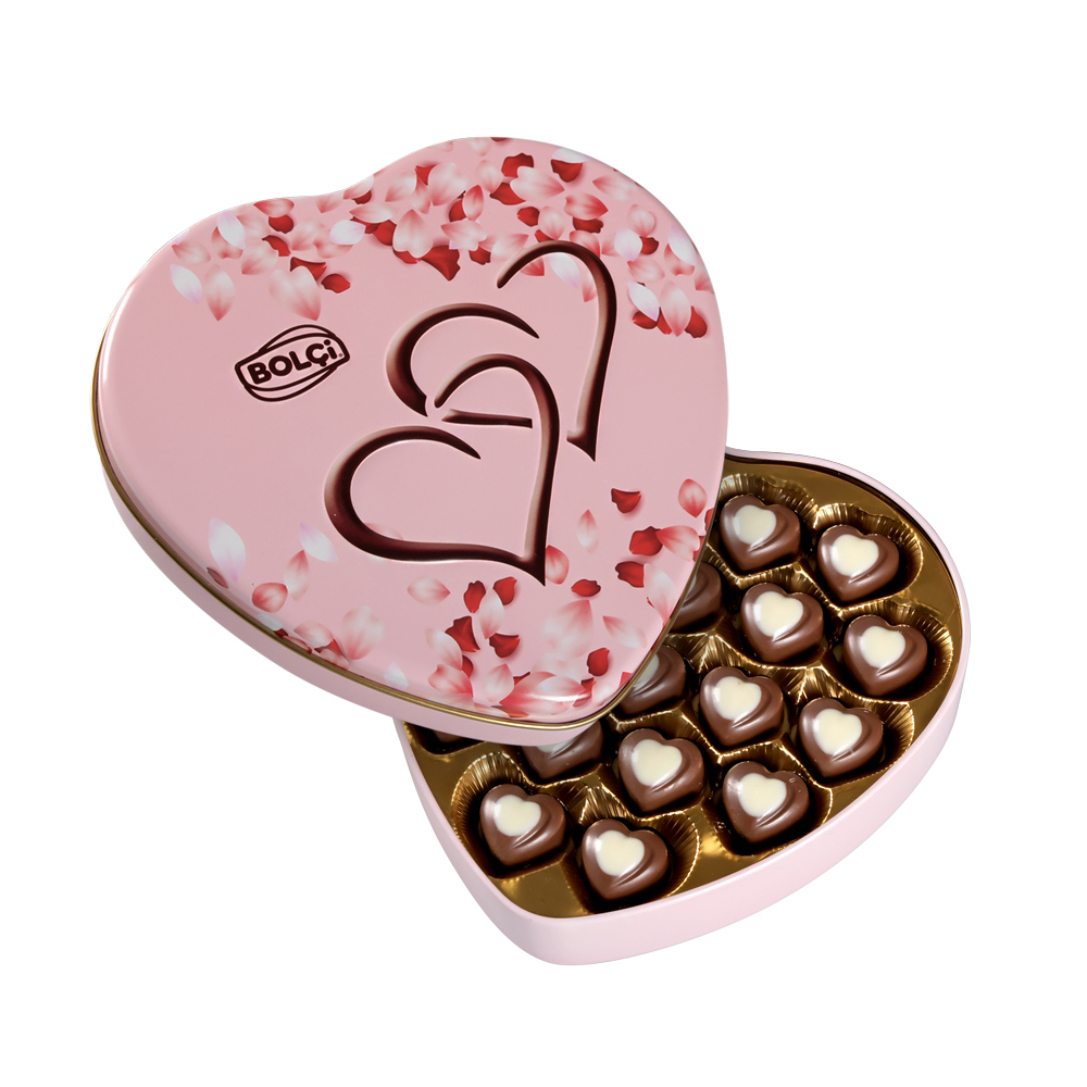 BOLÇİ -- BH088 / Metal Gül Yapraklı Kalp Kutu 240g (ADET FİYATIDIR. KOLİ İÇİ 12 ADETTİR)