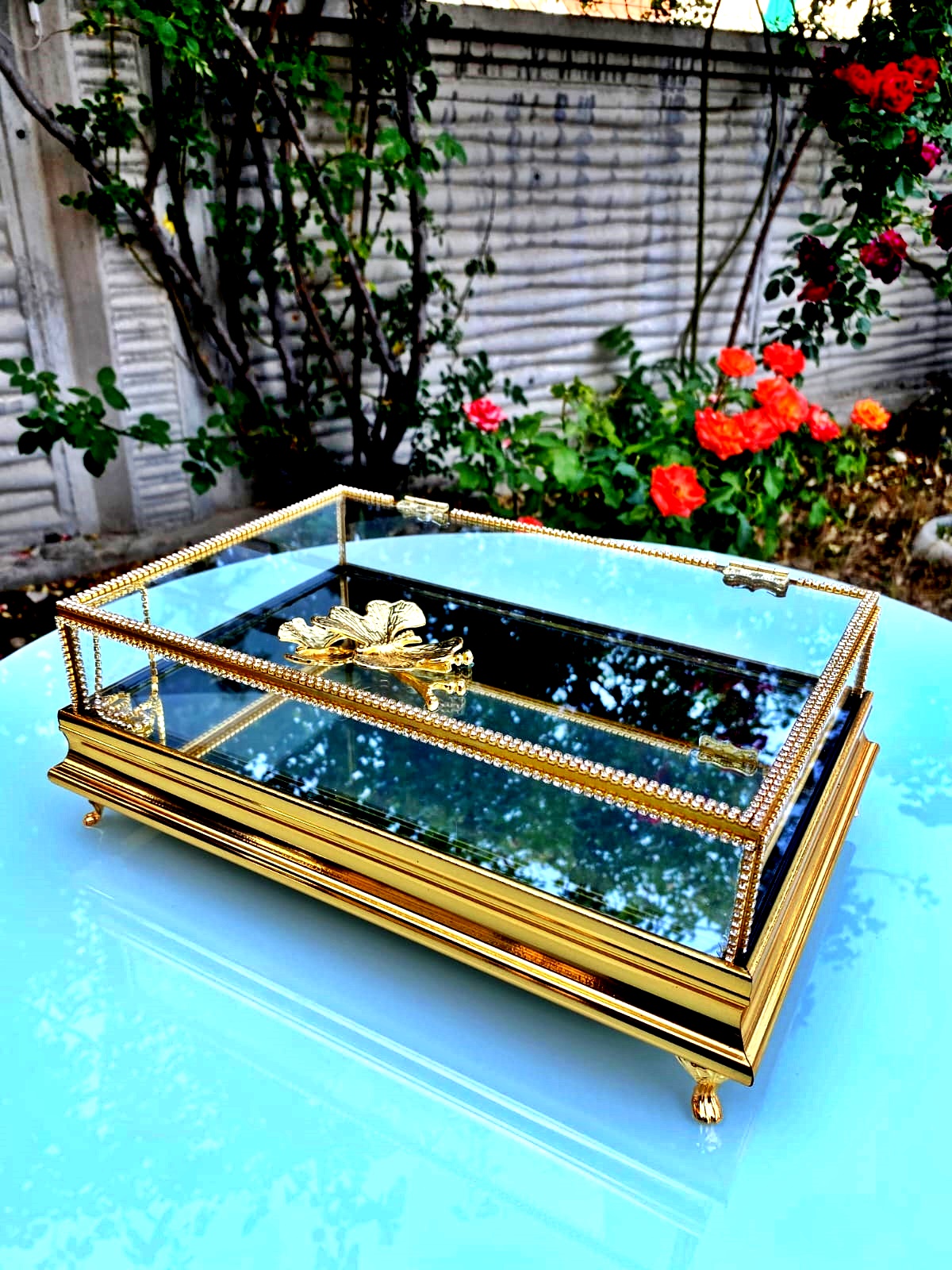 KDD İNOKS ALTIN TAŞLI KELEBEK KULPLU KALIN ÇITA ÇİFT KATLI 30*20 CM -- 0101