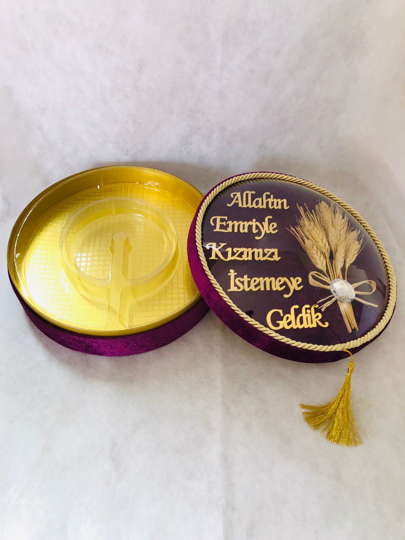 NR BOMBE CAMLI KIZ İSTEME YAZILI KADİFE KUTU MOR