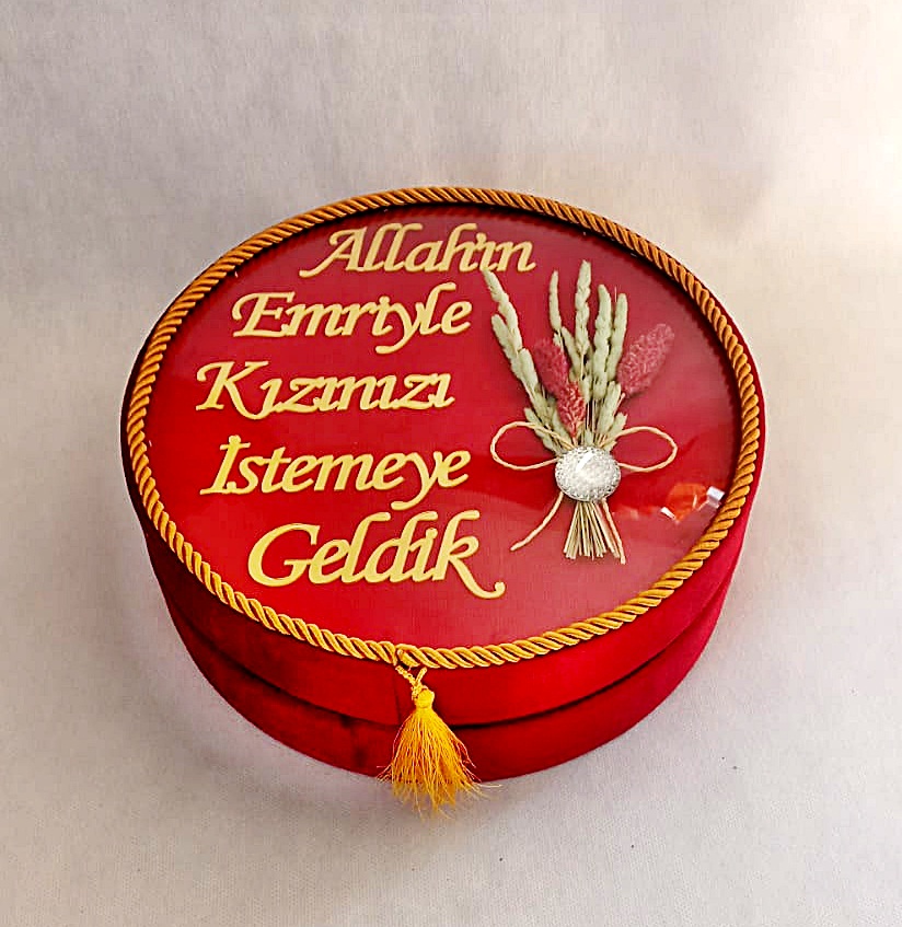NR BOMBE CAMLI KIZ İSTEME YAZILI KADİFE KUTU KIRMIZI