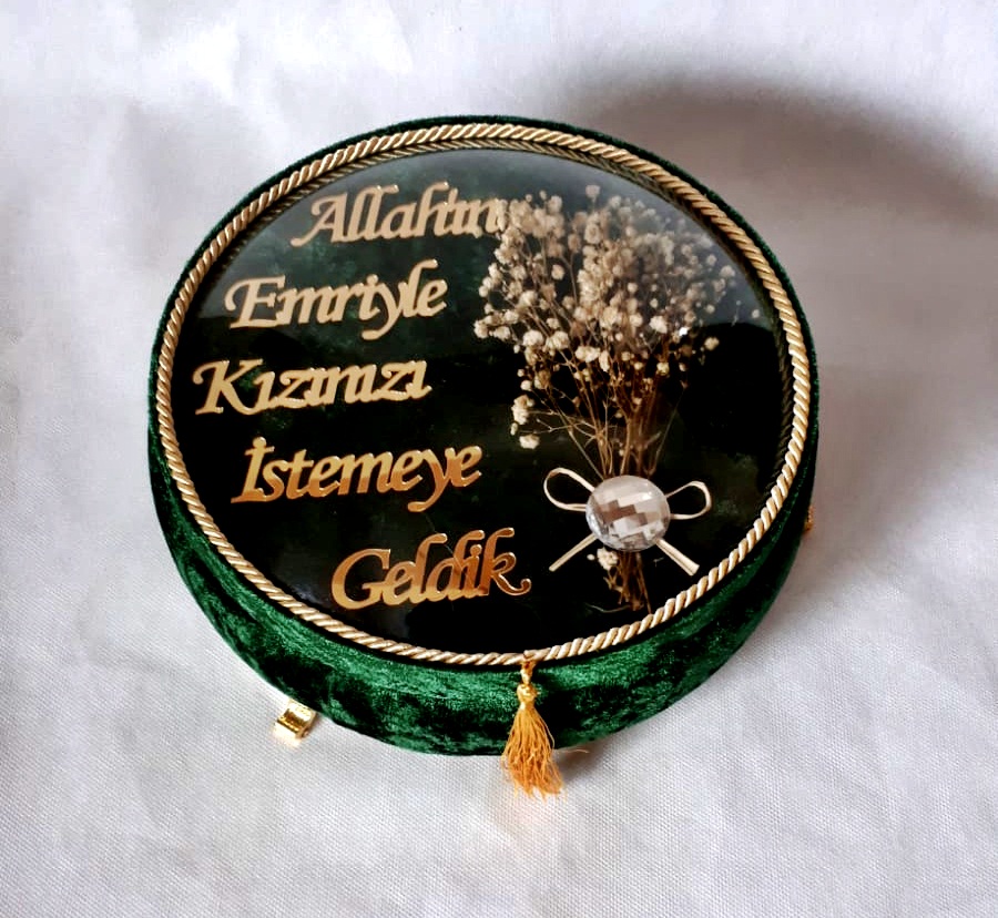 NR BOMBE CAMLI KIZ İSTEME YAZILI KADİFE KUTU YEŞİL