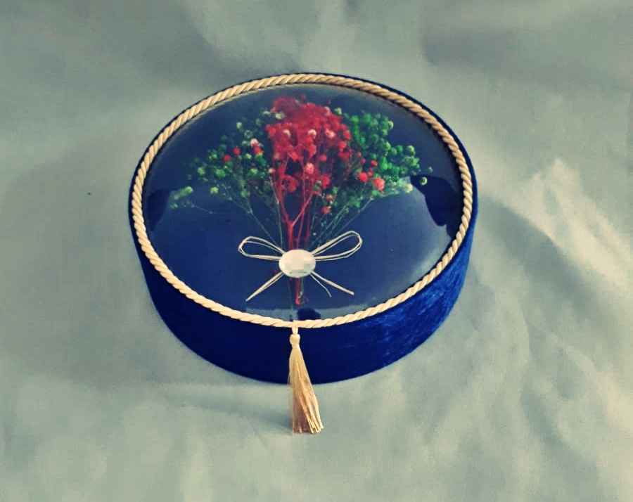 NR BOMBE CAMLI KIZ İSTEME YAZILI KADİFE KUTU LACİVERT