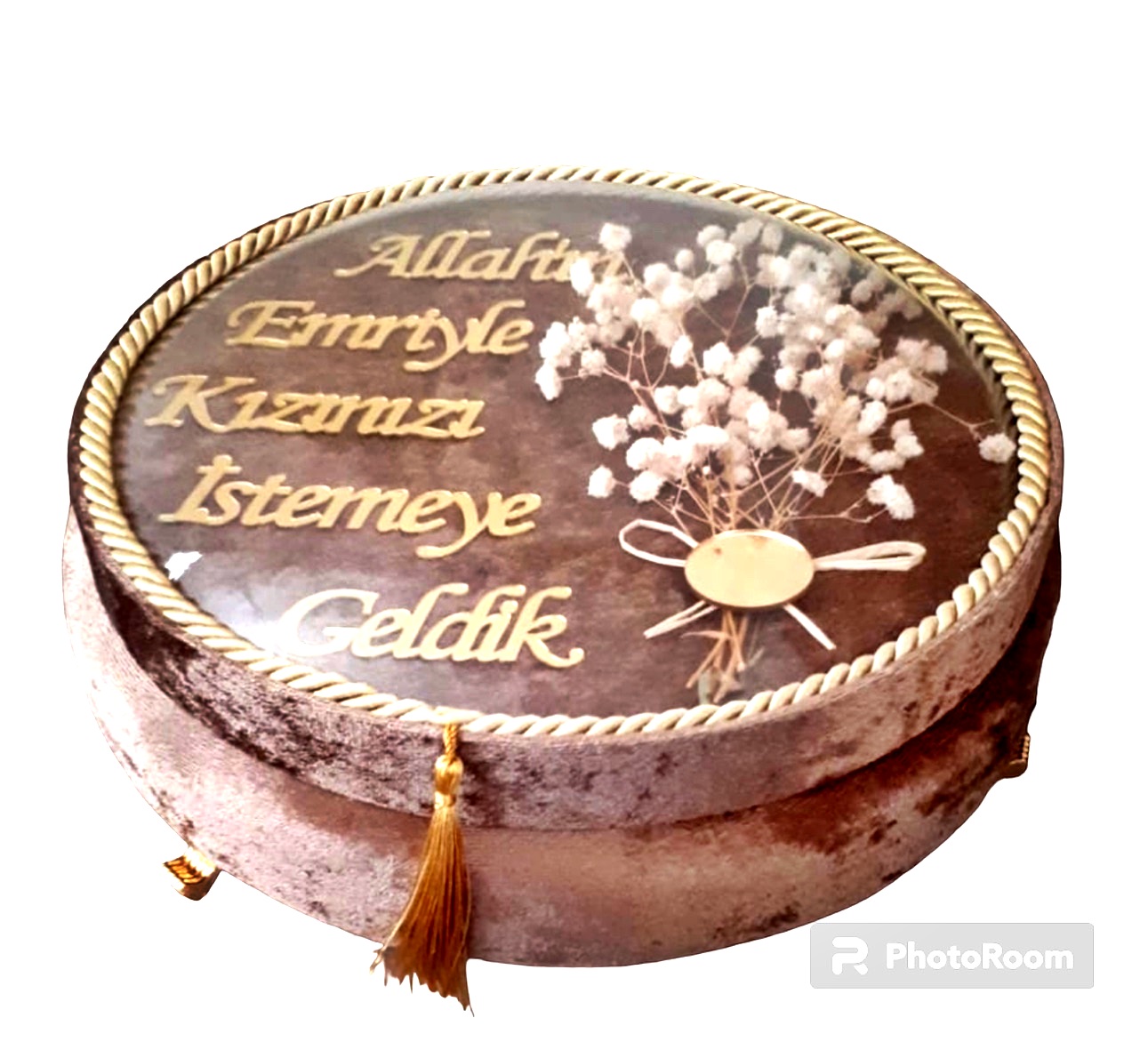 NR BOMBE CAMLI KIZ İSTEME YAZILI KADİFE KUTU KAHVERENGİ