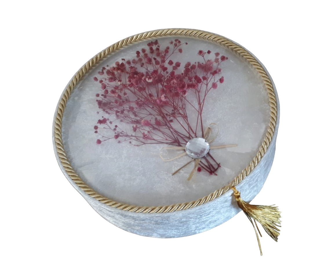NR BOMBE CAMLI KIZ İSTEME YAZILI KADİFE KUTU BEYAZ