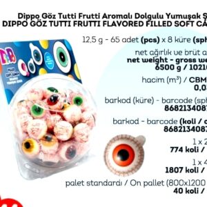 DİPPO DOLGULU YUMUŞAK ŞEKER GÖZ (ADET FİYATI 9.5 TL’DİR. KÜRE İÇİ 65 ADETTİR.)