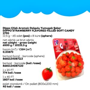 DİPPO DOLGULU YUMUŞAK ŞEKER ÇİLEK (ADET FİYATI 9.5 TL’DİR. KÜRE İÇİ 65 ADETTİR.)