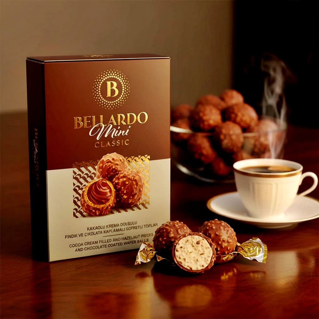 BELLARDO KAKAO KREMA DOLGULU , FINDIK VE ÇİKOLATA KAPLAMALI 120 GR (ADET FİYATIDIR. KOLİ İÇİ 12 ADETTİR)-917