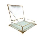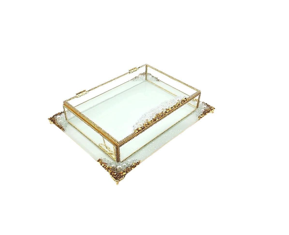 KDD BEYAZ CAM -İNCİLİ ALTIN TAŞLI SUNUMLUK+CAM KUTULU DİKDÖRTGEN JUMBO BOY AYAKLI SUNUMLUK-17