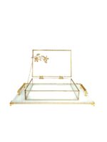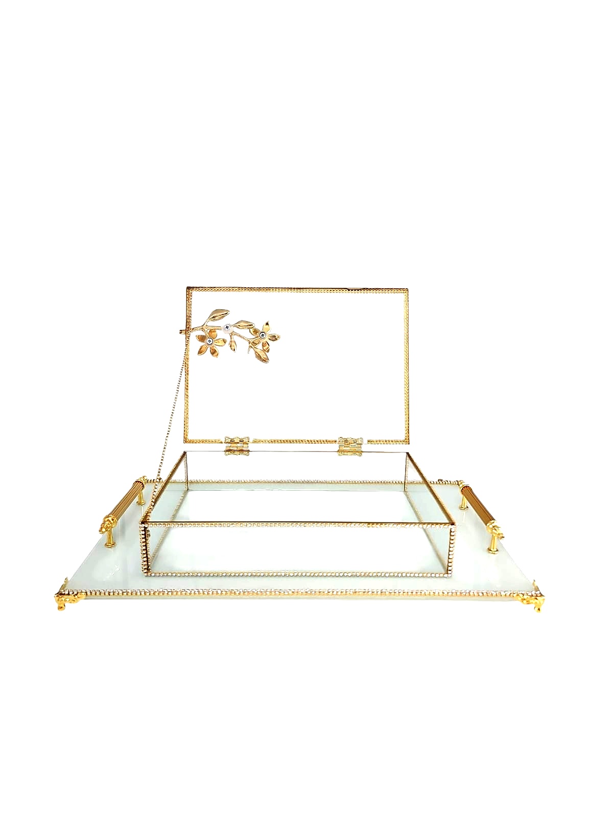 KDD BEYAZ CAM, MİNE ÇALIŞMASI BEYAZ PAPATYA ,DİKDÖRTGEN AYAKLI SUNUMLUK+CAM KUTU – 402