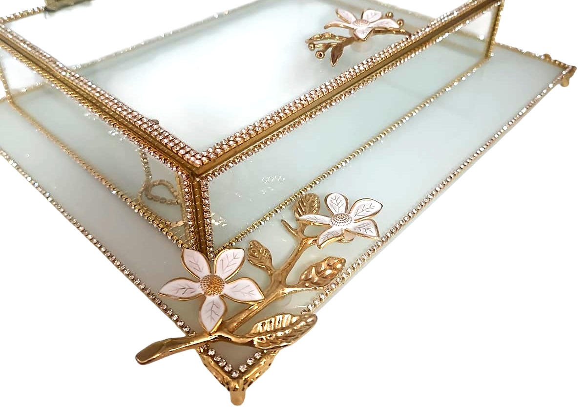 KDD BEYAZ CAM, MİNE ÇALIŞMASI , BEYAZ MANOLYA , DİKDÖRTGEN AYAKLI SUNUMLUK+CAM KUTU – 4099