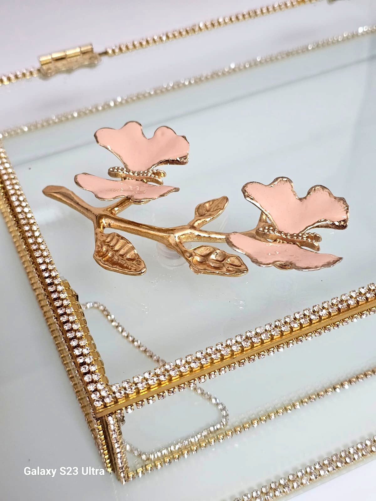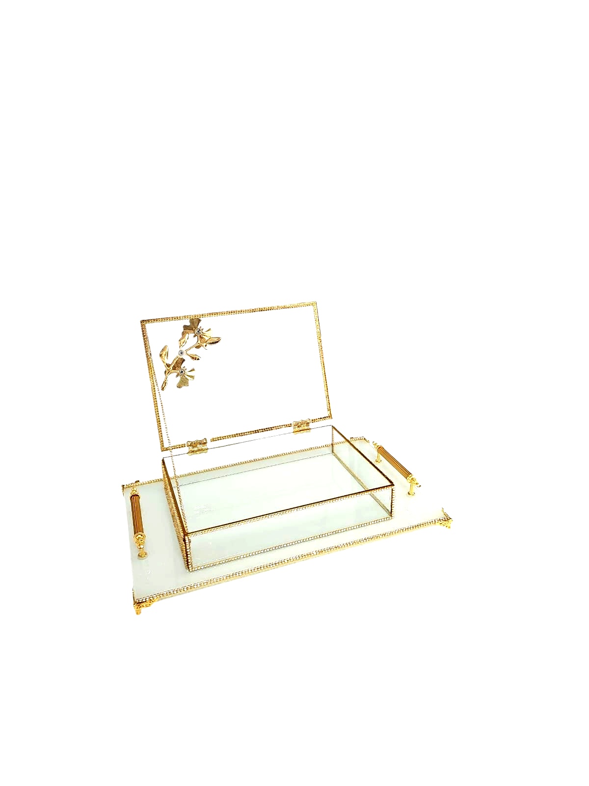 KDD BEYAZ CAM, MİNE ÇALIŞMASI PEMBE KELEBEK ,DİKDÖRTGEN AYAKLI SUNUMLUK+CAM KUTU – 400