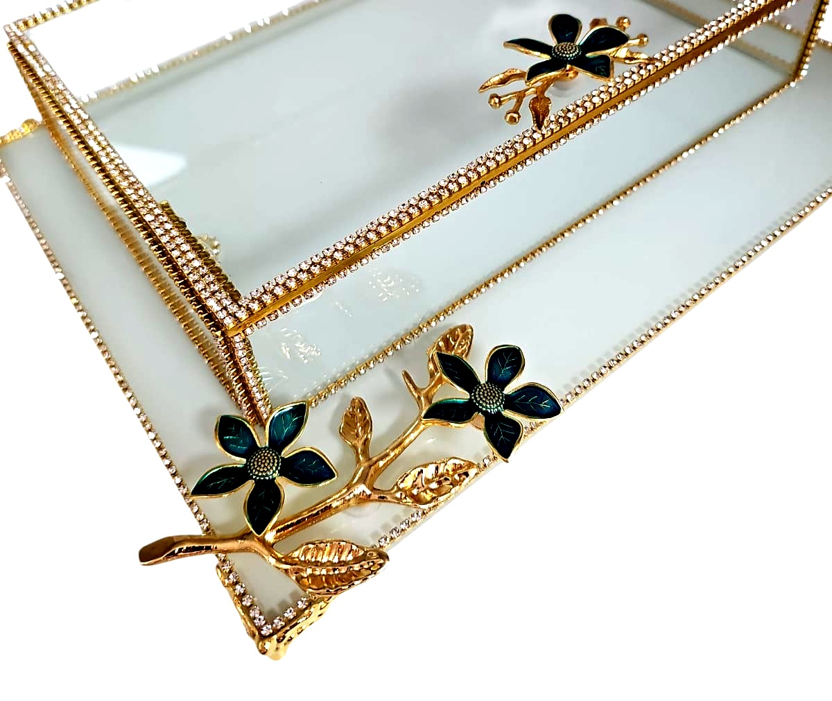 KDD BEYAZ CAM, MİNE ÇALIŞMASI , YEŞİL PAPATYA , DİKDÖRTGEN AYAKLI SUNUMLUK+CAM KUTU – 6099