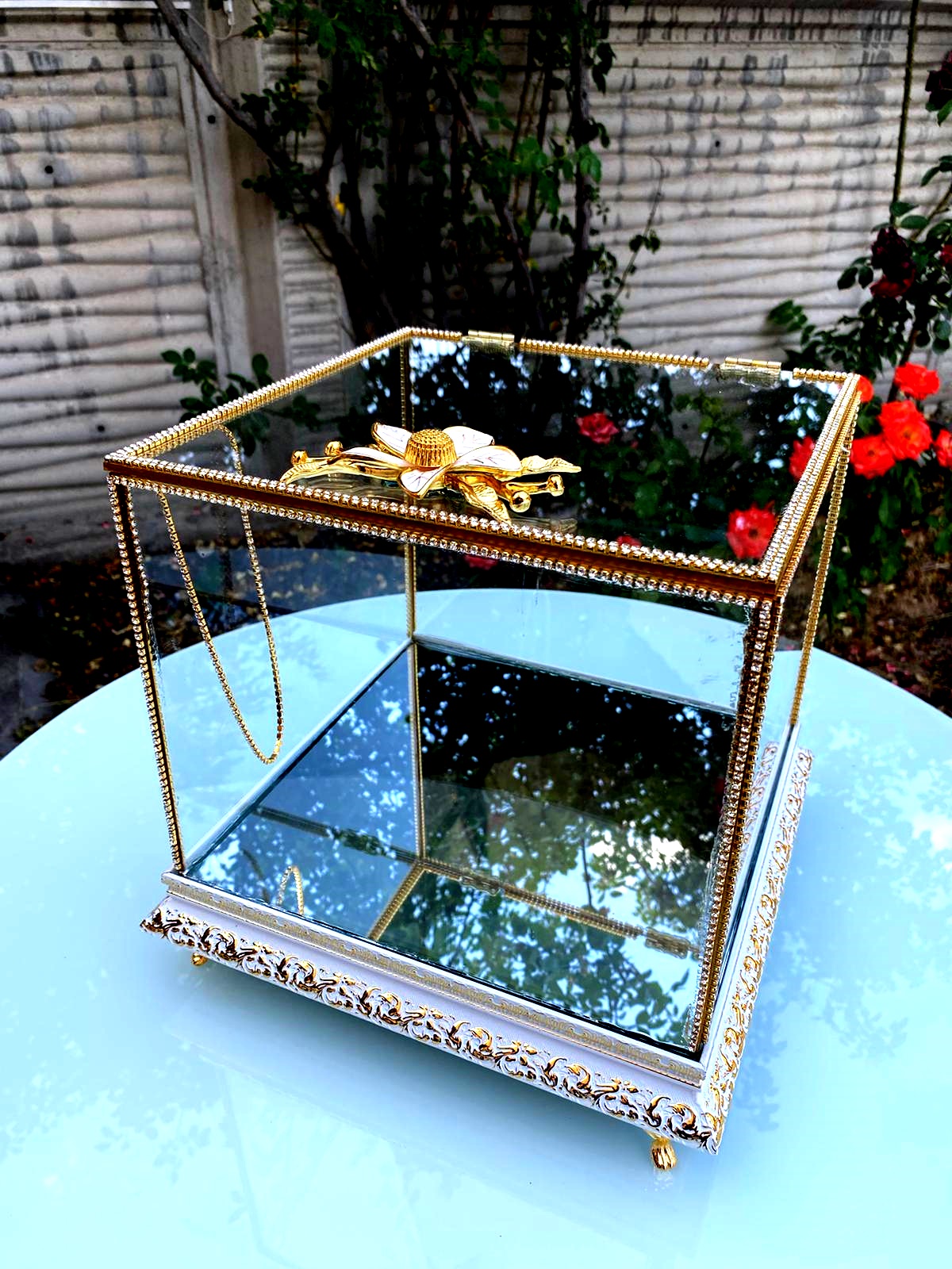 KDD SANDIK EJDERHA BEYAZ ALTIN ÇERÇEVELİ TAŞLI ALTIN MANOLYA KULPLU KALIN ÇITA 25*25*20 CM -- 0104