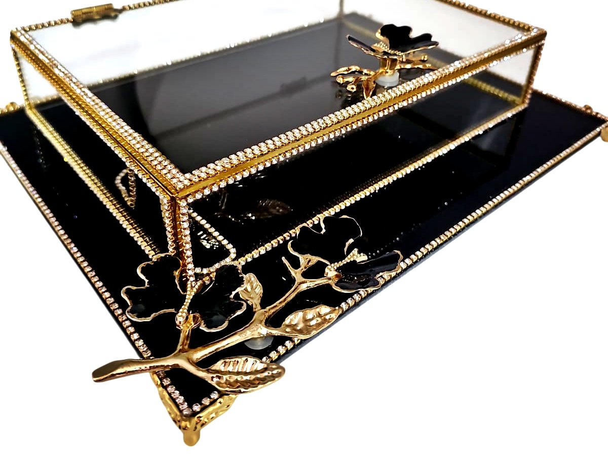 KDD SİYAH CAM, MİNE ÇALIŞMASI , SİYAH KELEBEK , DİKDÖRTGEN AYAKLI SUNUMLUK+CAM KUTU – 6095