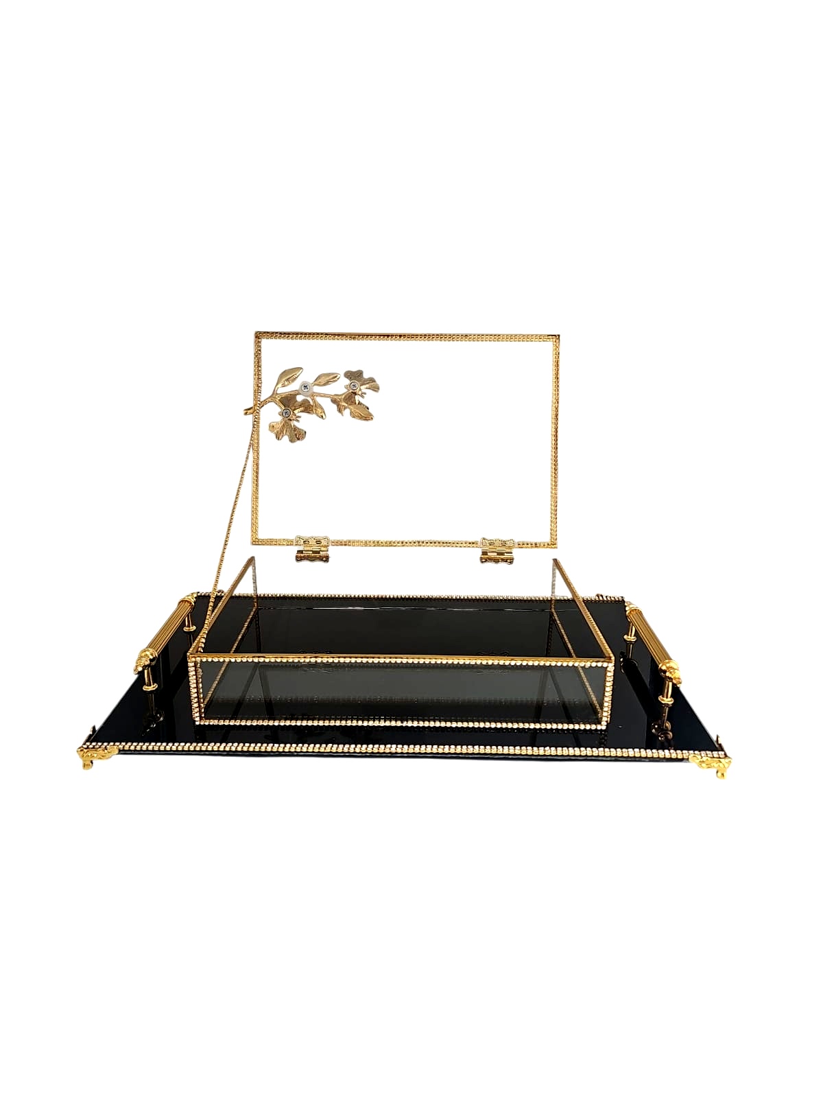 KDD SİYAH CAM, MİNE ÇALIŞMASI , SİYAH PAPATYA , DİKDÖRTGEN AYAKLI SUNUMLUK+CAM KUTU – 408