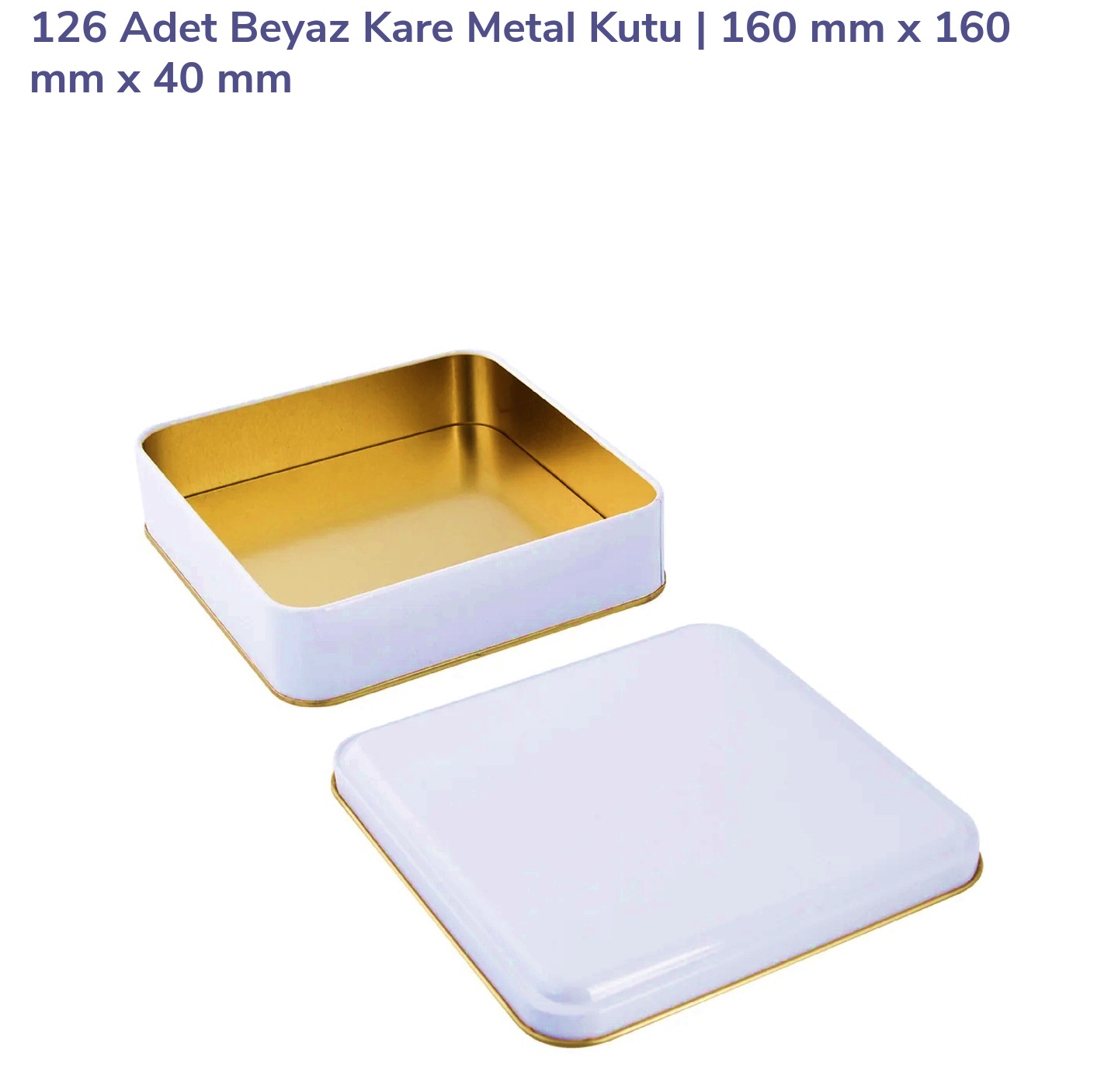 MŞ BEYAZ KARE METAL KUTU İÇİ GOLD 160*160*40 MM