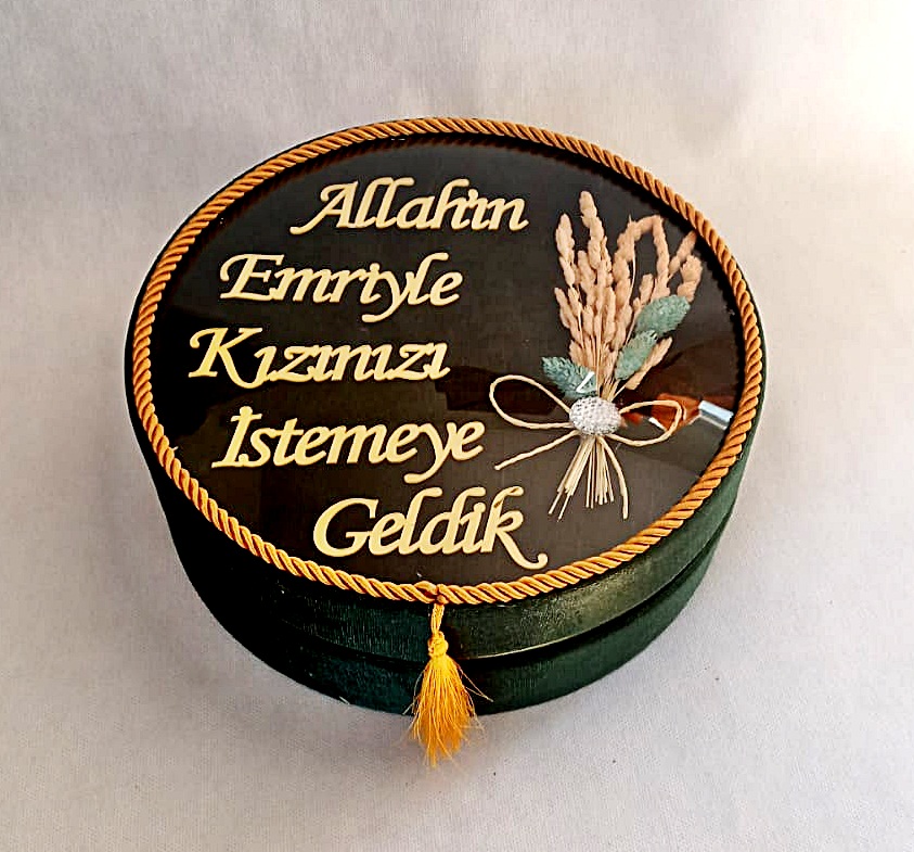 NR BOMBE CAMLI KIZ İSTEME YAZILI KADİFE KUTU YEŞİL