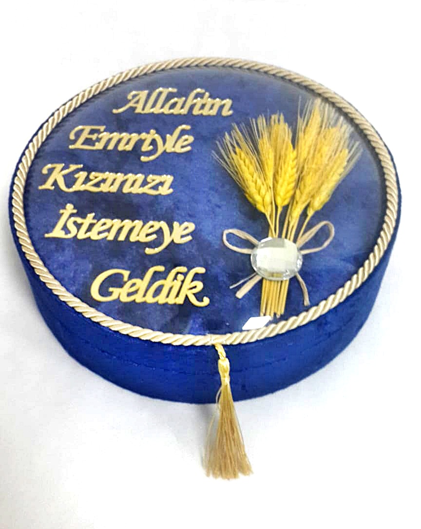 NR BOMBE CAMLI KIZ İSTEME YAZILI KADİFE KUTU LACİVERT